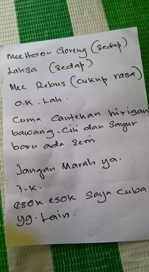 Asam pedas muo, Ikan pekasam, sambal petai, paru goreng garing, Soto, mee rebus, laksa Penang, nasi lemak, mee bandung muo, kuetiaw kung-fu, sate…